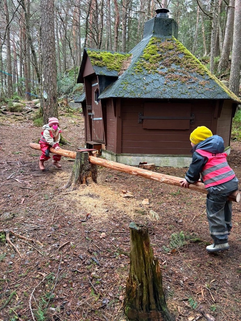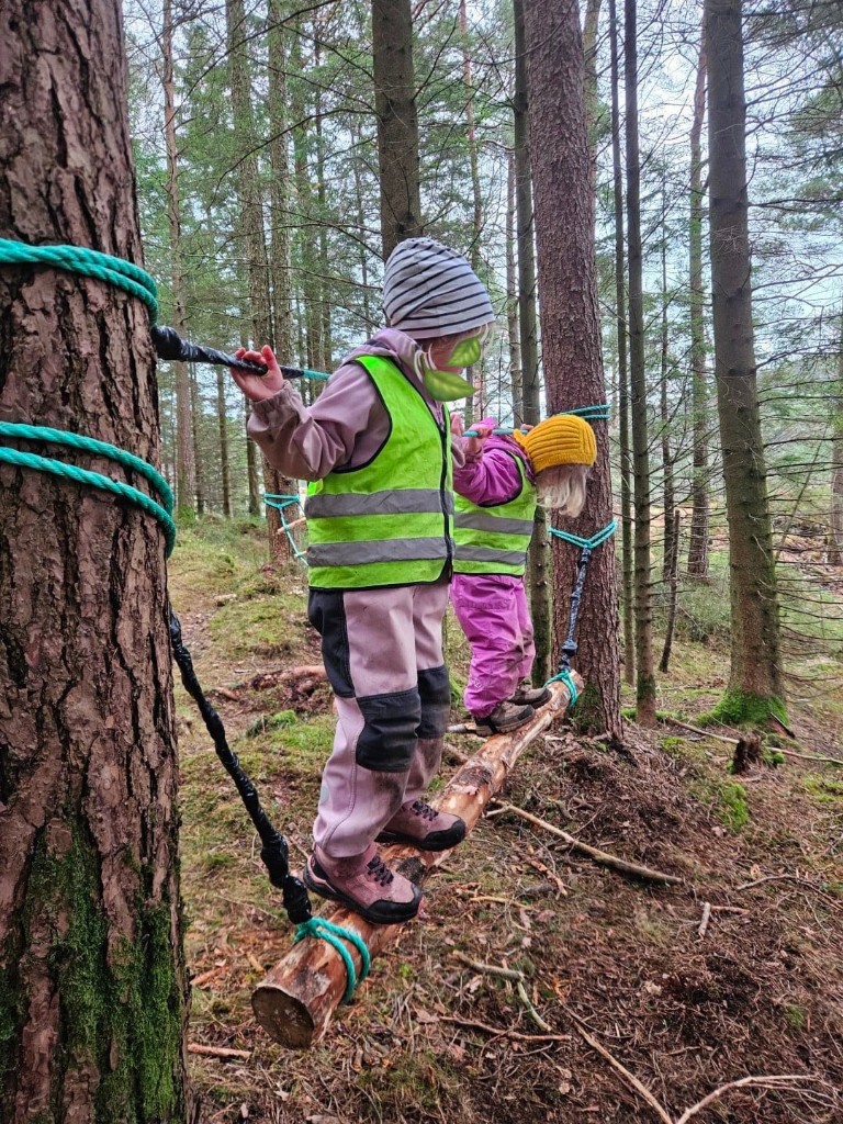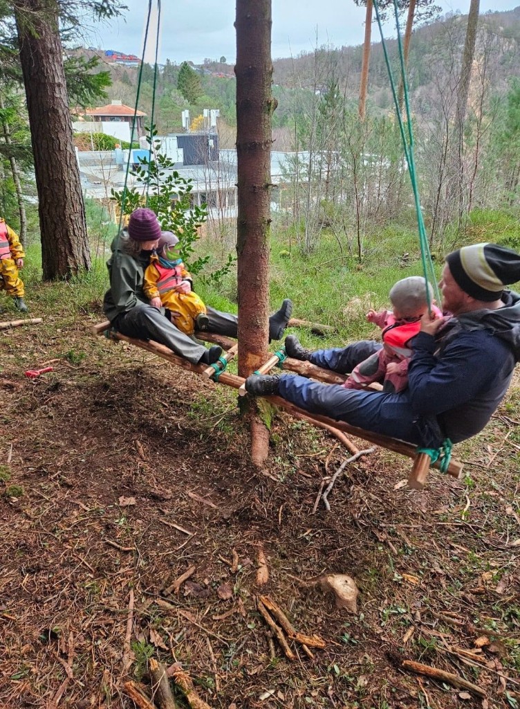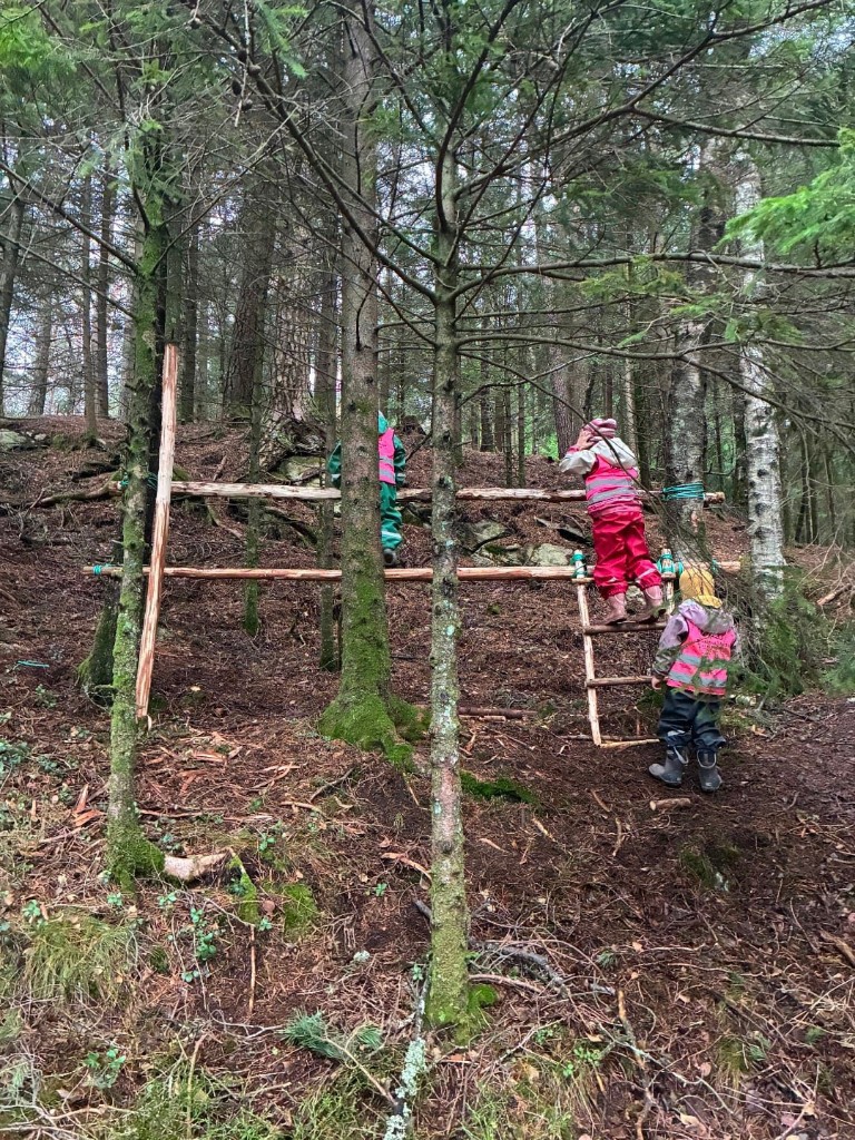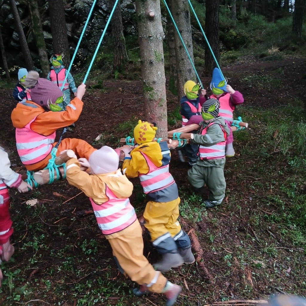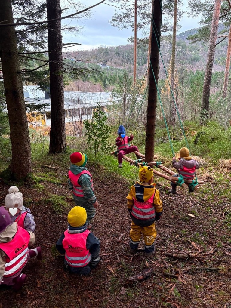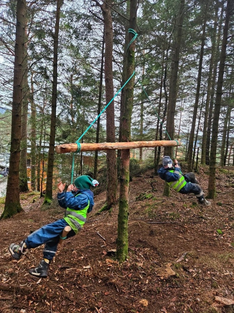 Denne uken har barna kost seg med leke-apparatene vi laget i skogen på plandagen 🥰🍃 Vi nyter hver dag, erfarer og deler de nære ting innenfor vår utviklende, trygge og gode ramme ❤️ GOD HELG! ☀️