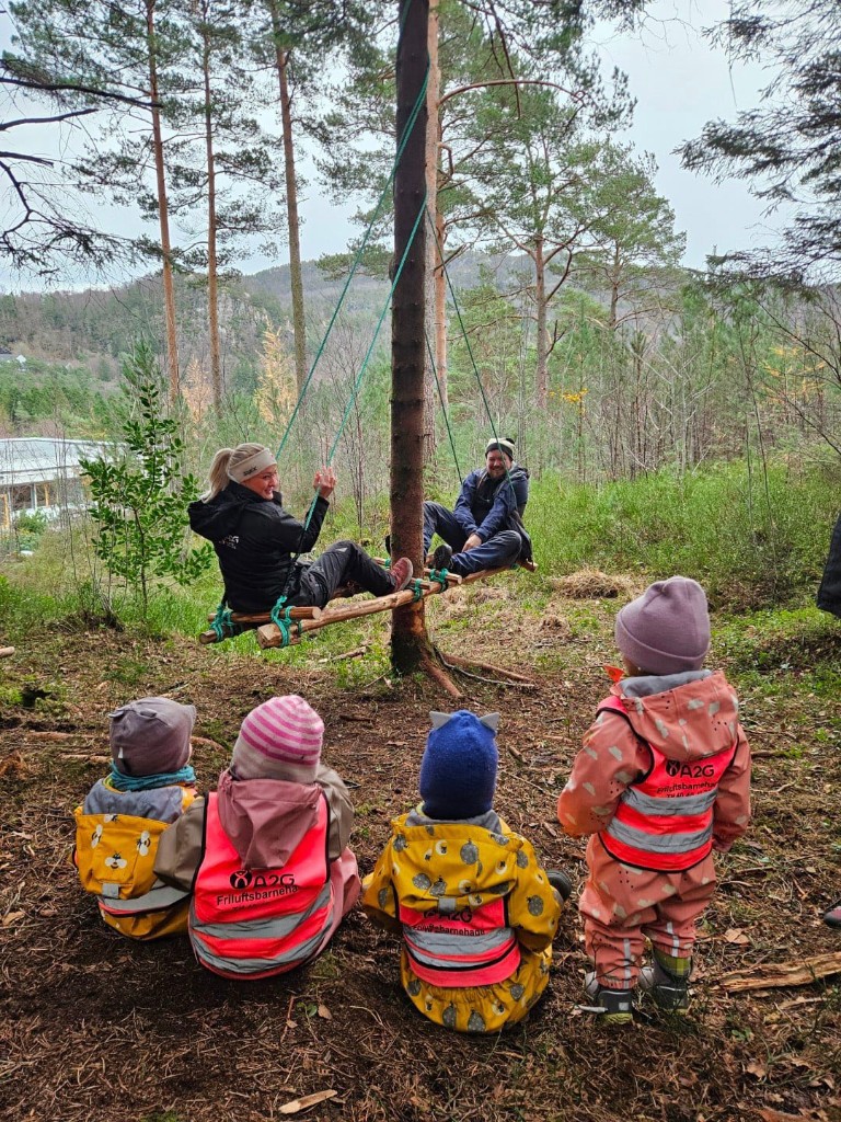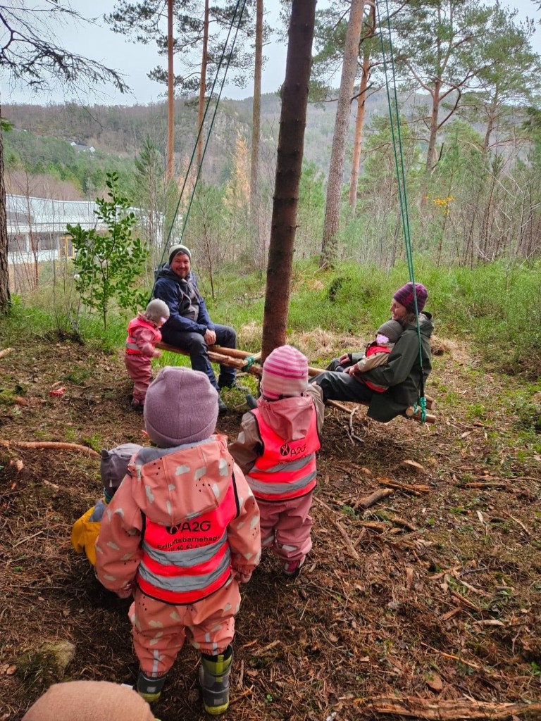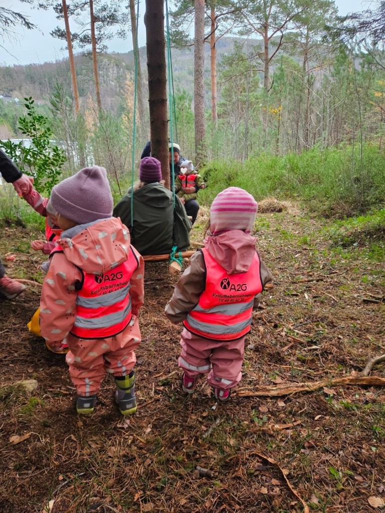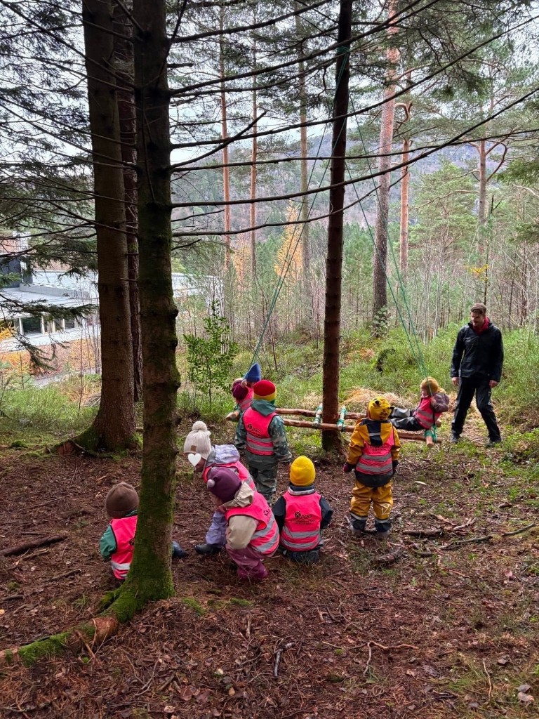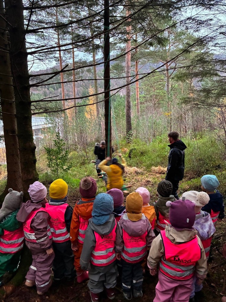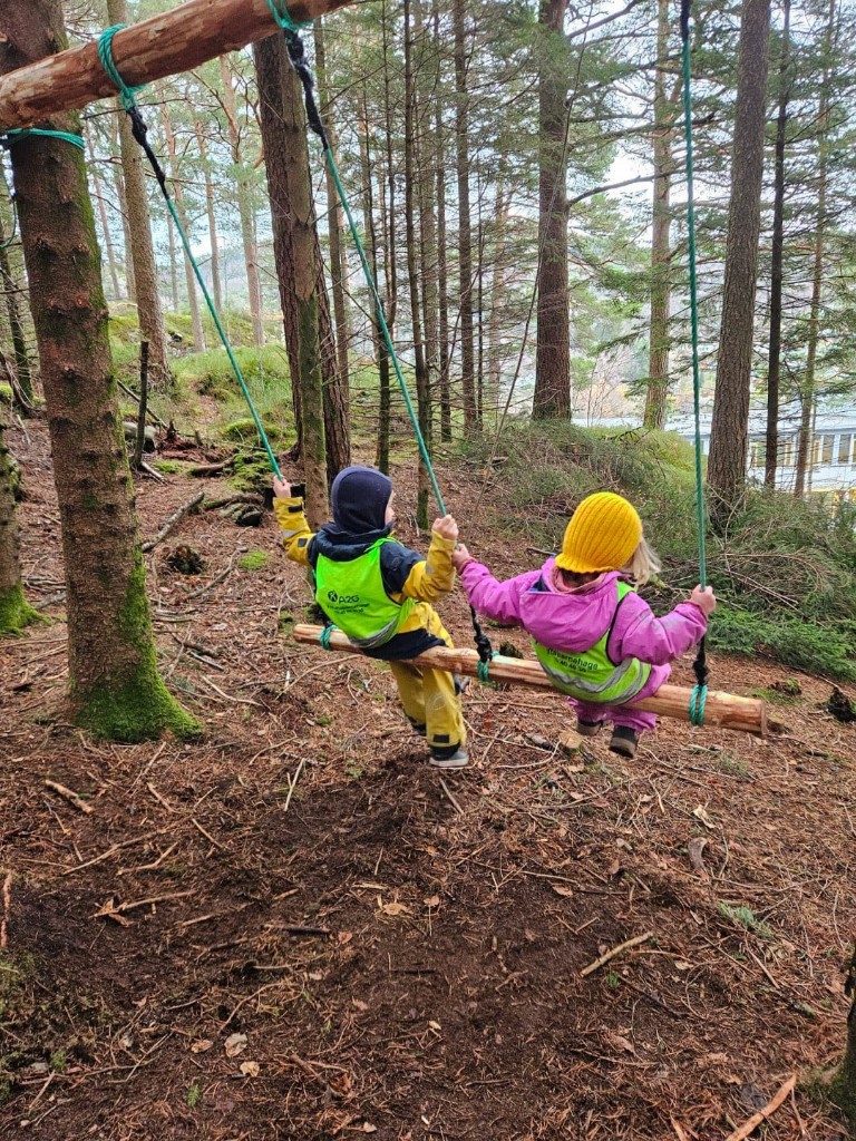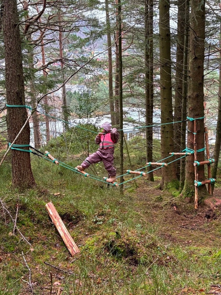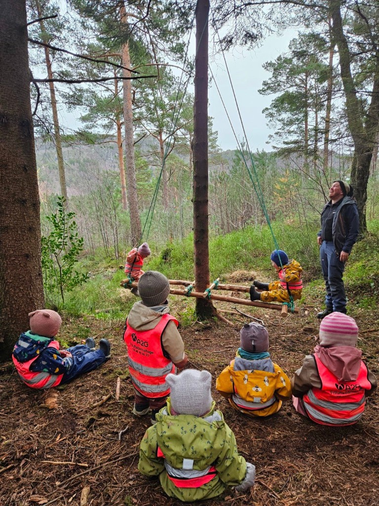 Denne uken har barna kost seg med leke-apparatene vi laget i skogen på plandagen 🥰🍃 Vi nyter hver dag, erfarer og deler de nære ting innenfor vår utviklende, trygge og gode ramme ❤️ GOD HELG! ☀️