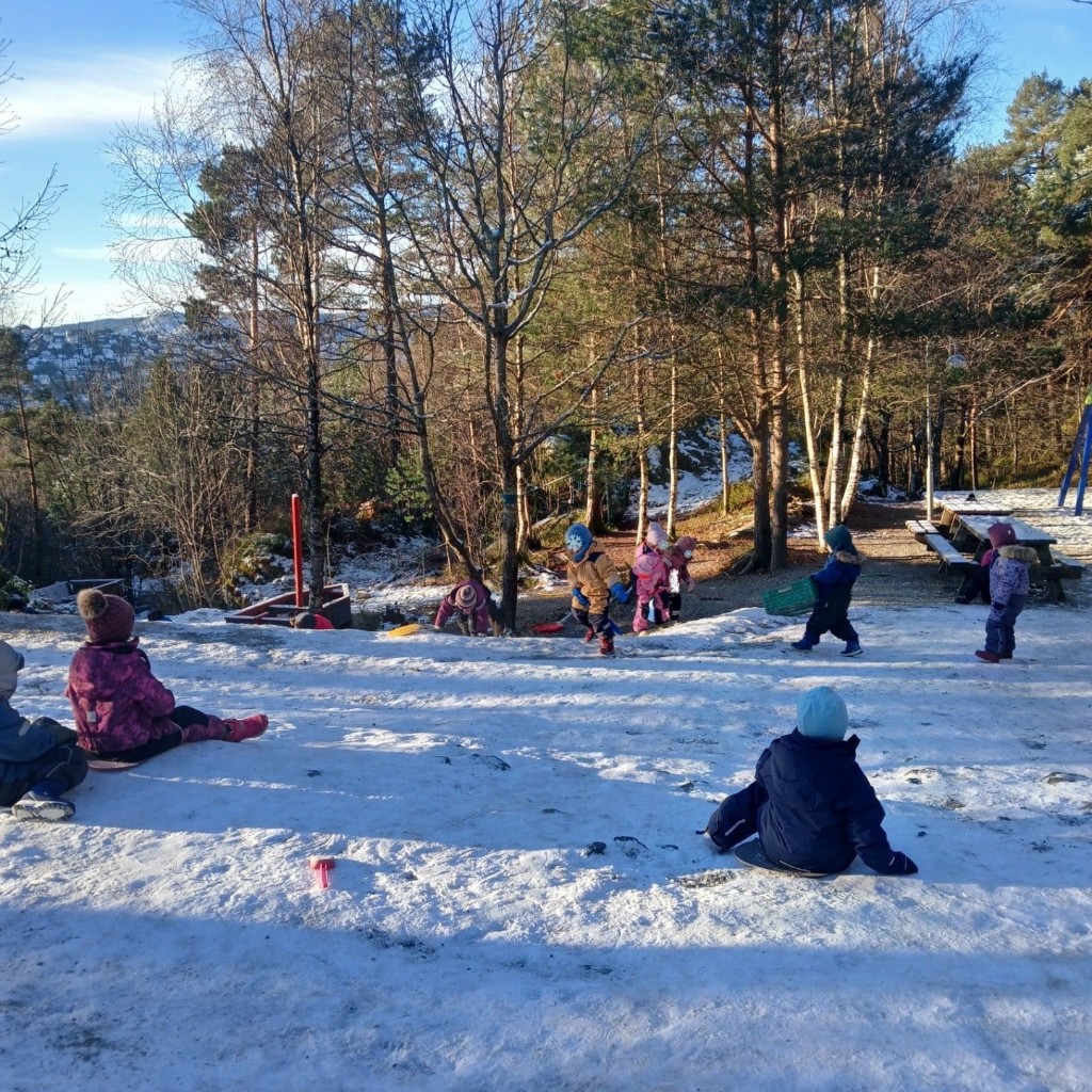 Vi har masse boltreplass til aking og koser oss når bakken har antydning til hvitt 🤩☃️ Sjekk ut hvordan uken vår har vært og nyt helgen! 🤩❄️☀️