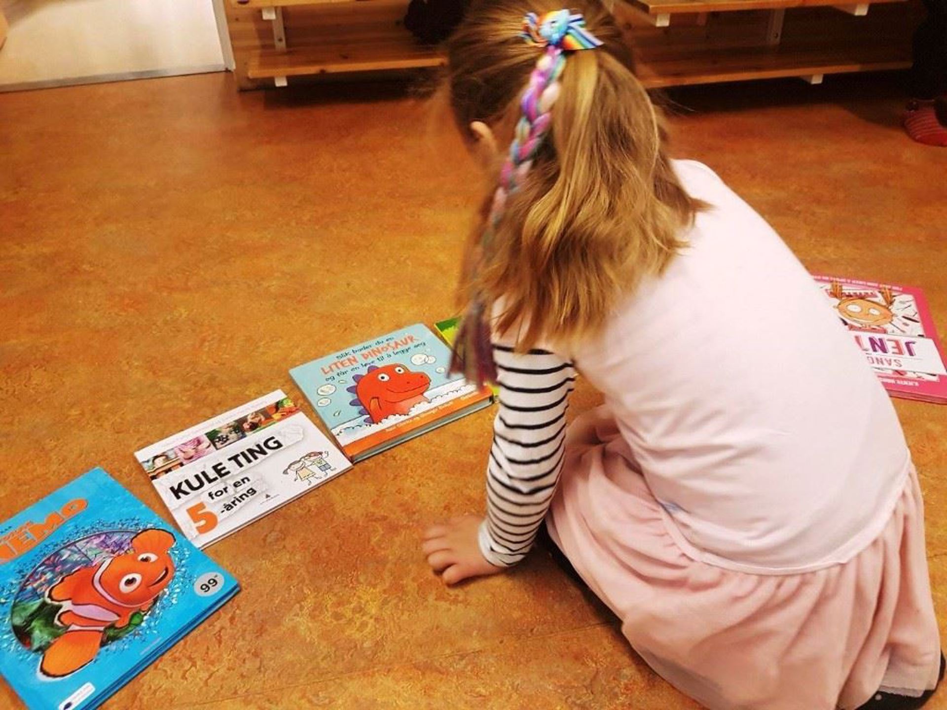 Fredager er det bokdag på Storm. Barna får ta med seg hver sin bok og de voksne tilrettelegger for gode lesestunder.
