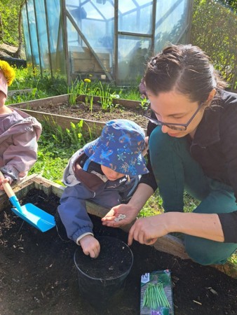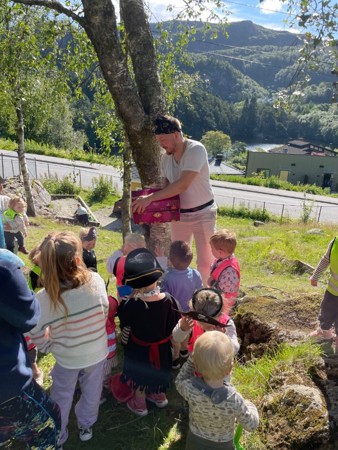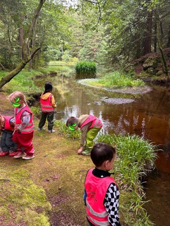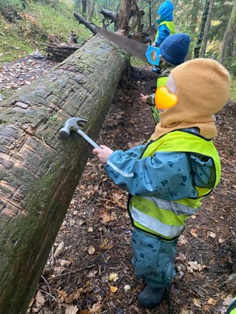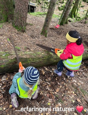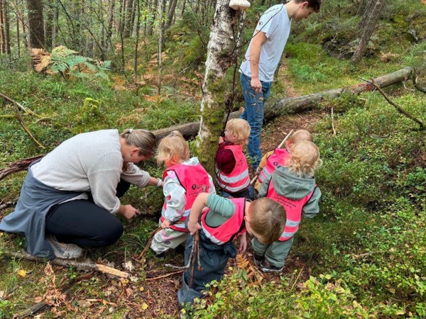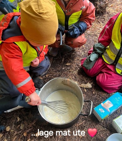 Alt vi kan gjøre inne, kan vi gjøre ute: vi tar aktiviteter med oss ut og koser oss med å oppdage, erfare, sanse og leke sammen - med naturen som lekegrind!