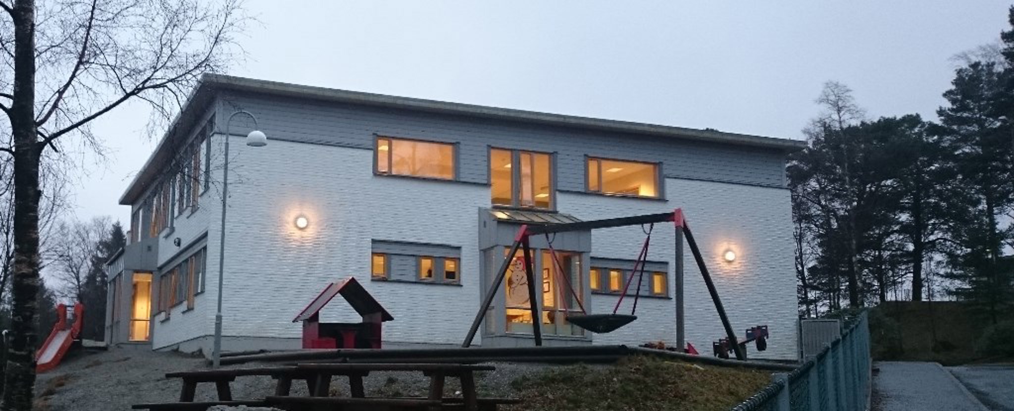 Hver gruppe har store, lyse lokaler med 2 lekerom i tillegg til avdelingsrommene. Uteområdene våre er kuperte og vi har også egen kjøkkenhage.